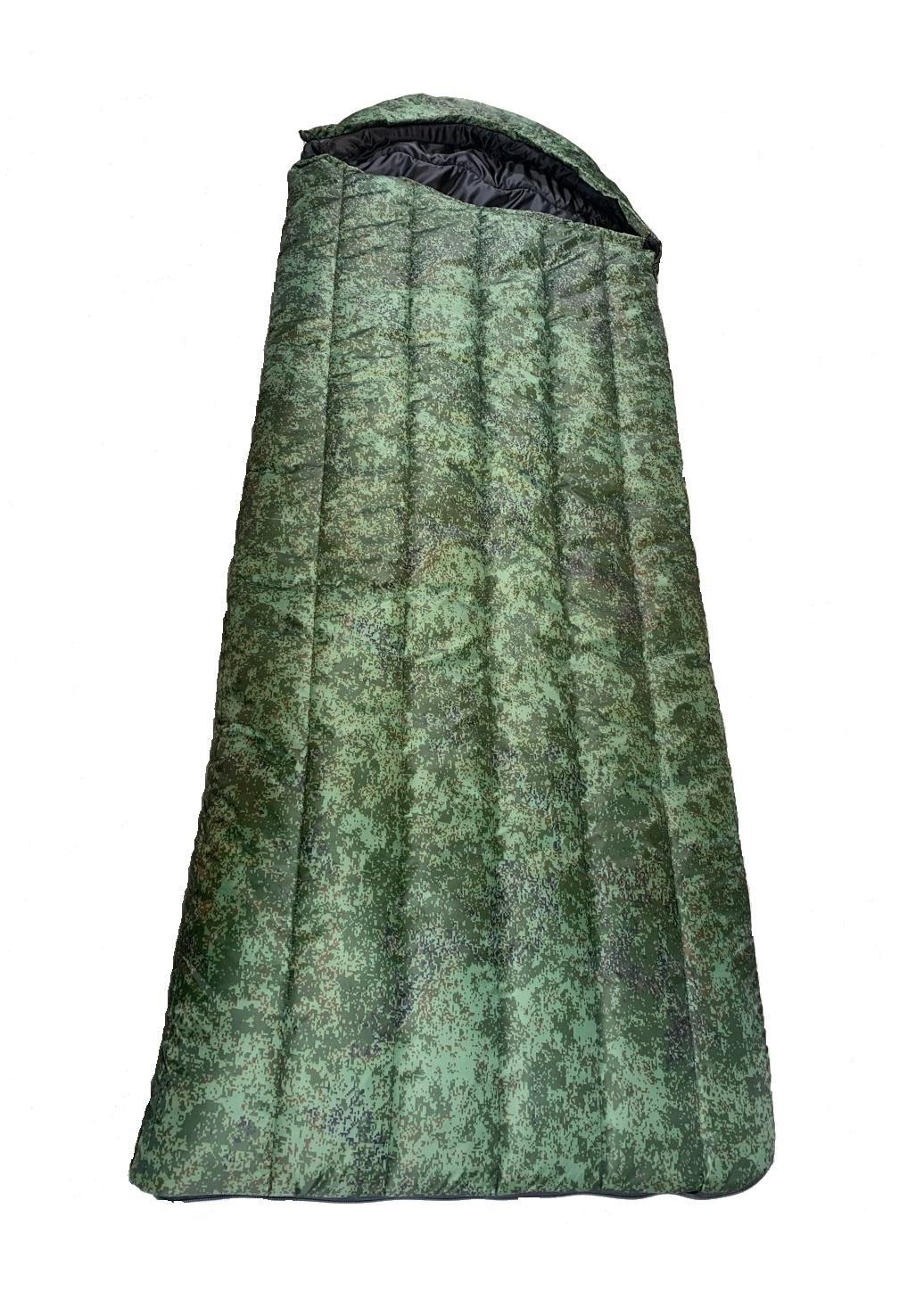 Улучшенный теплый зимний спальный мешок размером 220x70 утепленный синтепоном плотностью 200г/м2.. Можно использовать в качестве неуставного армейского спальника. Спальный мешок открывается с внутренней и внешней стороны, раскладывается в одеяло. Капюшон имеет регулируемый шнур с фиксатором. Чехол для мешка имеет ручку и утяжку - лямку в виде шнура. Предназначен для температур до -15 градусов.